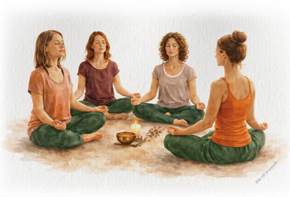 Wir verbinden fundiertes Zykluswissen mit sanfter Körperarbeit, Meditation und tief regenerierendem Yoga Nidra – damit du deinen Zyklus besser verstehst und dich wieder mehr mit deinem Körper verbindest.